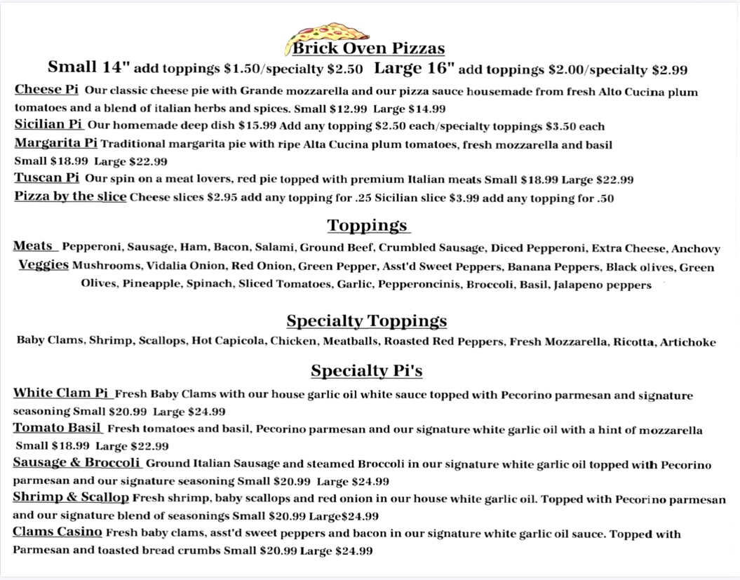 Pi Pizza Bar offers a straightforward menu centered around comforting, classic Italian favorites with a casual, neighborhood feel. Whether you’re stopping by for a relaxed lunch, a laid-back dinner with friends, or a cozy evening out, the selection invites easy enjoyment without fuss.